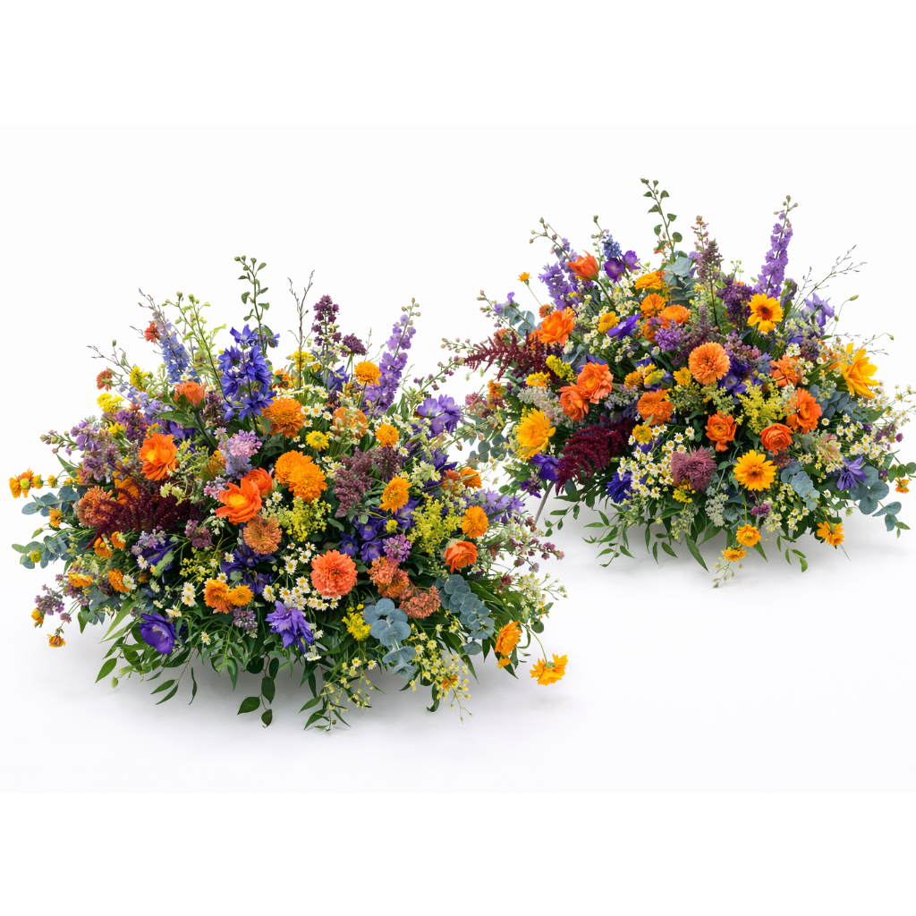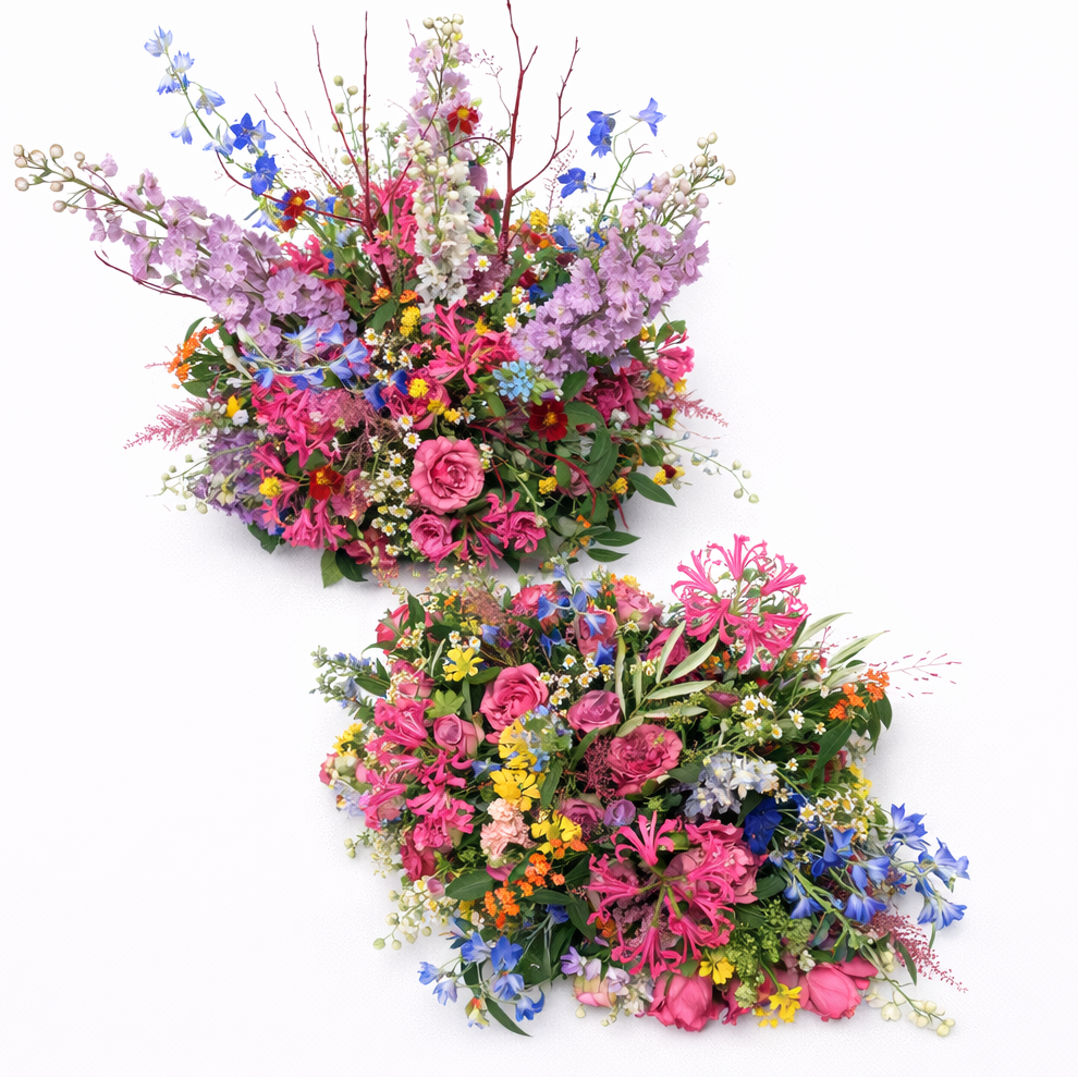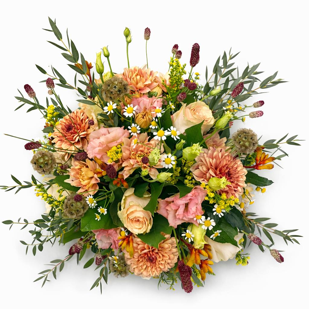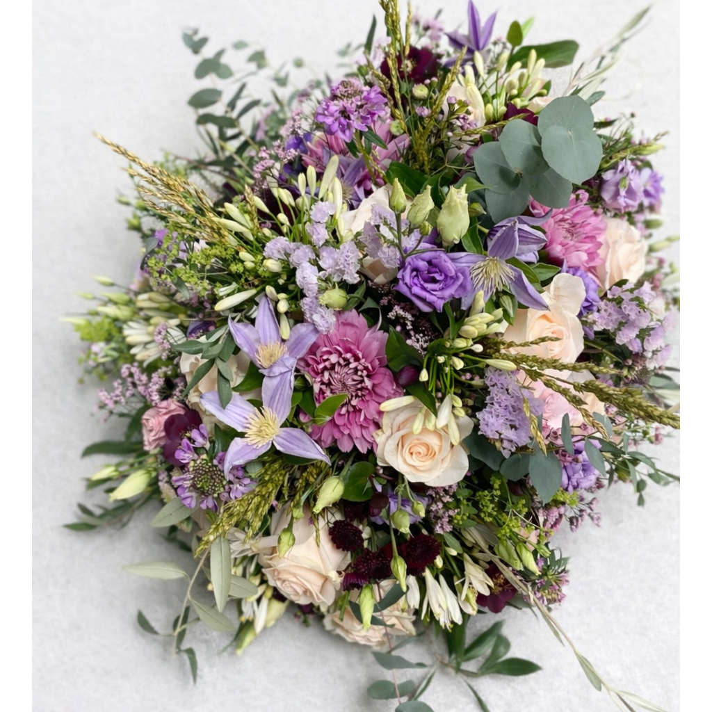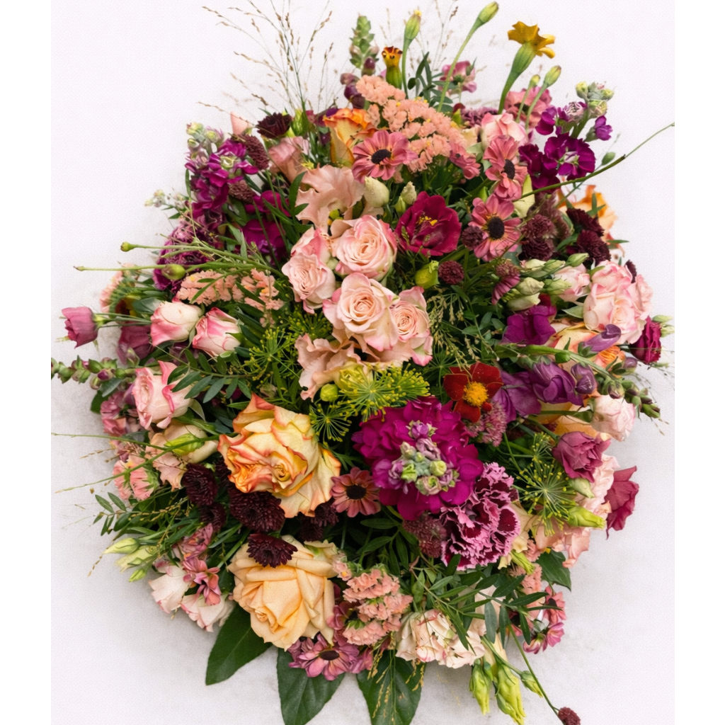 Bestaat uit meerdere soorten en vormen bloemen. Hierdoor krijgt het boeket meer diepte en volume.