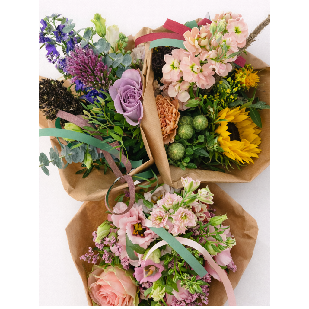 Bestaat uit meerdere soorten en vormen bloemen. Hierdoor krijgt het boeket meer diepte en volume.
